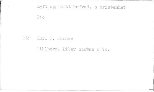 //// Lyft upp ditt hufVudy o kristenhet D:o //// Lk Chr. J. 1..nsen //// :ihlberg, Liber wntus 78. ////