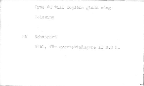 //// Lyss du till foglars glada sång Lelsning //// Schuppert //// Bibl. för cyartettsångare II B.8 E. ////
