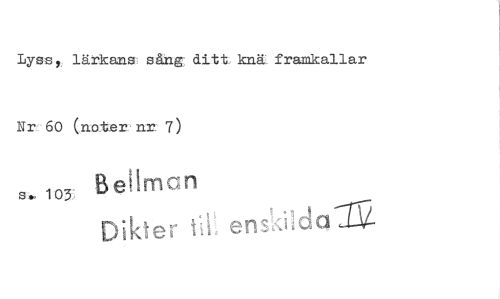//// Lyse, lärkans- sång ditt knä frarakallar //// Nr 60 (noter nr 7) .1 _j //// Bellman Selii00-5- //// a. i 03; //// n 3 //// D e IjK //// al ////