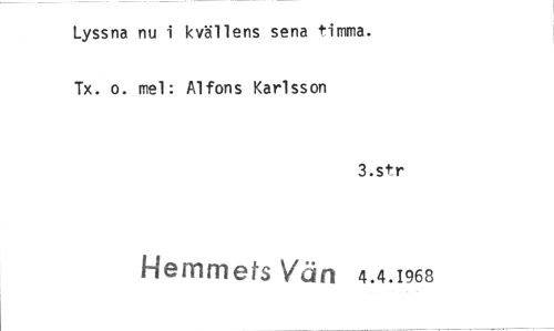//// Lyssna nu i kvällens sena timma. Tx. o. mel: Alfons Karlsson //// 3.str //// Hemmets Vän 4.4.1968 ////