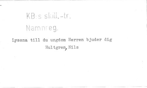 //// Lyssna till du ungdom Herren bjuder dig //// Hultgren/Nils ////