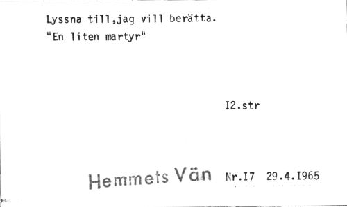 //// Lyssna till,jag vill berätta. "En liten martyr" //// I2.str //// Hemmets Vän Nr.I7 29.4.1965 ////