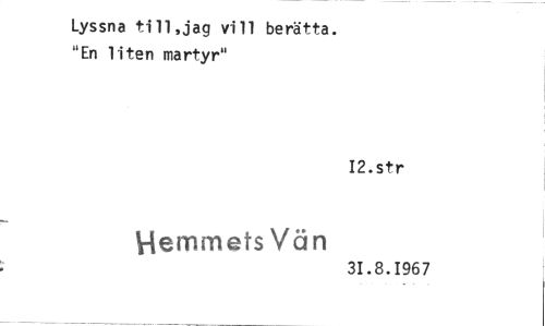 //// Lyssna till ,jag vill berätta. "En liten martyr" //// I2.str //// 1-lernrnets Vän //// 31.8.1967 ////