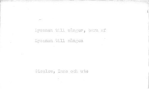 //// Lyssnen till sånger, be= af Lyssnen till sången //// Gisslow, Inne och ute ////