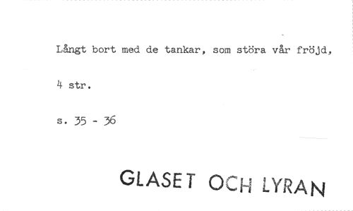//// Långt bort med de tankar, som störa vår fröjd, 4 str. //// s. 35 - 36 //// GLASET OCH LYRAN ////
