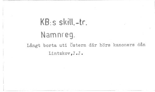 //// KB: s //// Namnreg. //// Långt borta uti Östern där hörs kanoners dån Lintzkov,J.J. ////