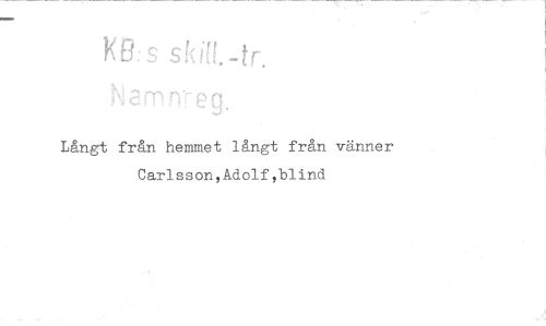 //// Långt från hemmet långt från vänner //// Carlsson,Adolf,blind ////