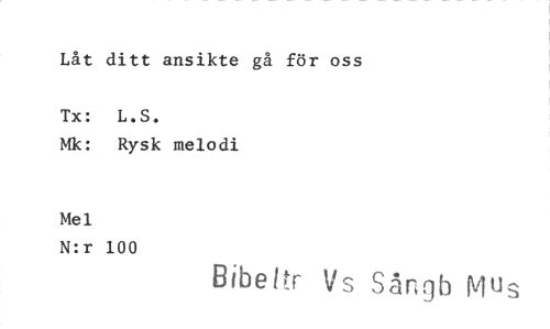 //// Låt ditt ansikte gå för oss //// Tx: L.S. //// Mk: Rysk melodi //// Mel //// N:r 100 //// Bibel r Vs Sångb Mus ////