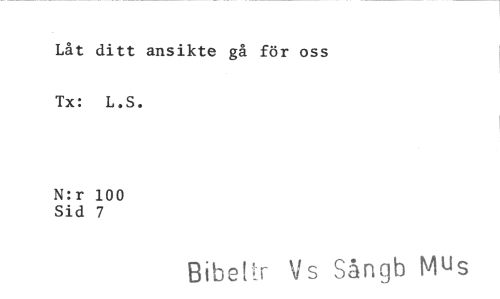 //// Låt ditt ansikte gå för oss Tx: L.S. //// N:r 100 Sid 7 //// Bibel r Vs Sångb Mus ////