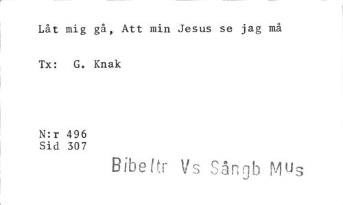 //// Låt mig gå, Att min Jesus se jag må Tx: G. Knak //// N:r 496 //// Sid 307 //// Bibeltr Vs S-ångb Mus ////