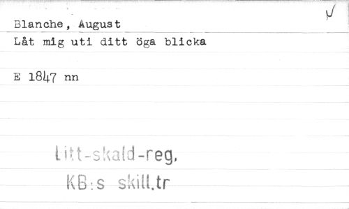 //// Blanche, August //// _ _ //// Låt mig uti ditt öga blicka //// E 1847 nn //// titt-skald -reg, //// KB: s skilttr ////