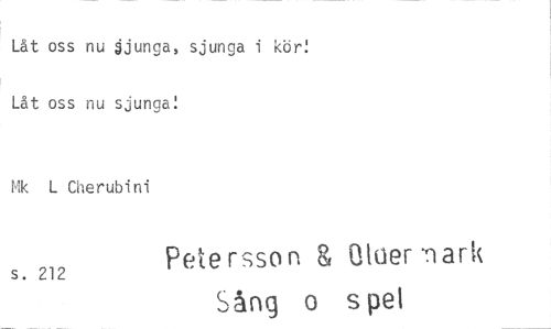 //// Låt oss nu jjunga, sjunga i kör! Låt oss nu sjunga! //// Mk L Cherubini //// s. 212 Petersson, g Oluer nark //// Sång o spel ////
