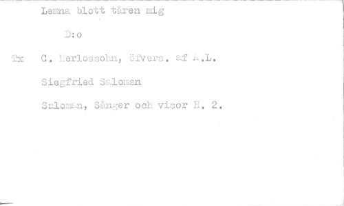 //// Lemna blott tåren mig //// D:o //// 'Abc, C. Lerlo.sohn, öfVers. af A.L. //// Siegfried Salong= //// Salomn, Sånger och visor H. 2. ////
