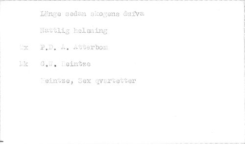 //// Länge sedan skogens dufVa Nattlig helsning //// 2x P.D. A. Ätterbom //// L2k G.W, Leintze //// 17."eintze, Sex qvartetter ////