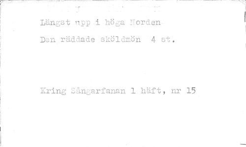 //// r7,7-77777:' //// Längst iipp i höga Norden. De-n räddade sköldmön 4 st. //// Kring Sångarfanan 1 häft nr 15 ////