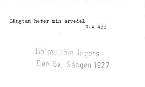 //// Längtan heter min arvedel N:0 499 //// ho' rt-k-sförn-ingers //// Den Sv. Sången 1927 ////