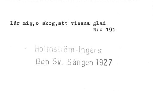 //// Lär mig,o skog,att vissna glad. //// N:o 191 //// Hros:J bn-ingers //// Ilen Sv. Sången 1927 ////