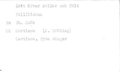 //// Lätt öfver kiiilar och fält Vallflickan //// Tx Th. Knös //// Mk Lartinus (J.'Fröding) //// Lartinus, Fyra sånger ////
