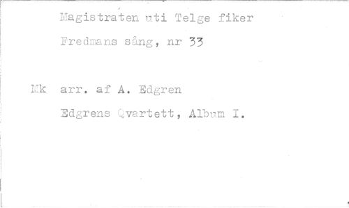 //// Magistraten nti Telge fiker Fredmans sång, nr 33 //// Mk arr. af A. Edgren //// Edgrens Qvartett, Album I. ////