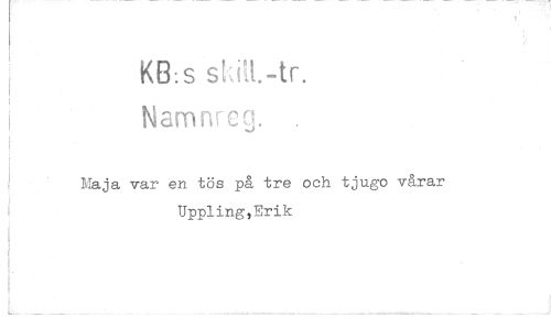 //// KB: s sh11.-tr. //// Namnr,-c. //// Maja var en tös på tre och tjugo vårar Uppling,Erik ////
