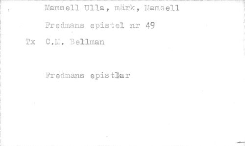//// Mamsell Ulla, märk, Mamsell Fredmans epistel nr 49 //// Tx c.r. Bellman //// Fredmans epistlar ////
