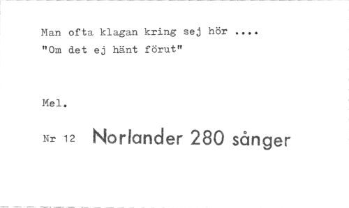//// Man ofta klagan kring sej hör ... "Om det ej hänt förut" //// Mel. //// Nr 12 Norlander 280 sånger ////