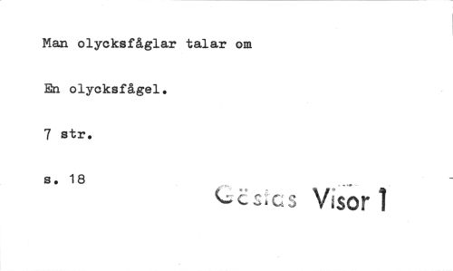 //// Man olycksfåglar talar om //// En olycksfågel. //// 7 str. //// s . 18 //// Msorl ////
