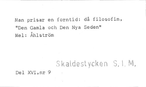 //// Man prisar en forntid: då filosofin, "Den Gamla och Den Nya Seden" //// Mel: Åhlström //// Skatdestycken S, M, //// Del XVI,nr 9 ////