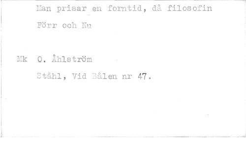 //// ran prisar en forntid, då filosofin Förr och Nu //// mk 0. Åhlström //// Ståhl, Vid 2Allen nr 47. ////