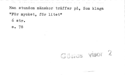 //// Man stundom mänskor träffar på, Som klaga "För myeket, för litet" //// 6 er. //// s. 78 //// -t VISC ////