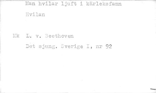 //// Man hvilar ljuft i kärleksfamn Hvilan //// rk L. v. Beethoven //// Det sjung. Sverige I, nr 92 ////