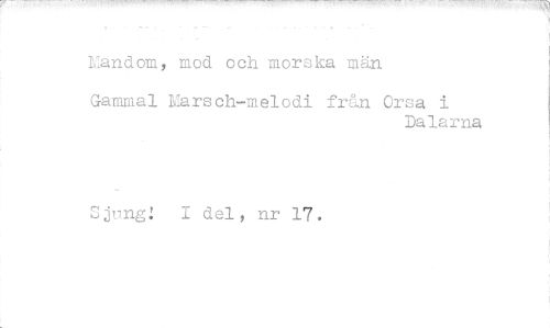 //// Mandom, mod och morska män //// Gammal Tylarsoh-melodi från. Orsa //// Dalarna //// Sjnn.g: I del, nr 17. ////