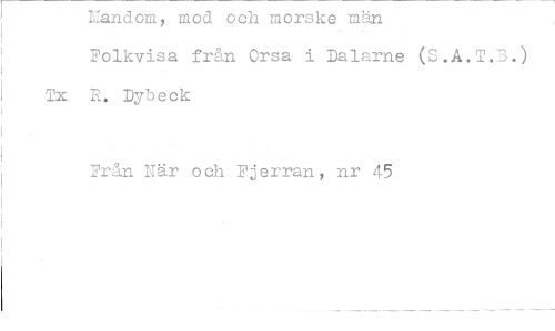 //// Mandom mod och morske män //// Folkvisa från Orsa i Dalarne (S.A.T.B.) Tx: R. Dybeck //// Från När och Fjerran, nr 45 ////