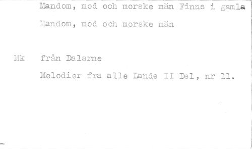 //// Mandom, mod och morske män Finns i gamla Mandom, mod och morske män //// Mk från Dalarne //// Melodier fra alle Lande II Del, nr 11. ////