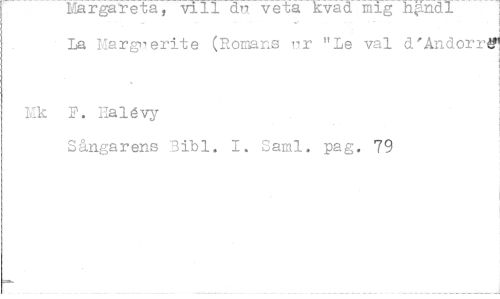 //// Margareta, vill veta kvad mig 1441d1 //// - La Margnerite (Romans nr "Le val d'Andorre, //// :1k P. ila2Avy //// Sångarens Bibi. Sam'. pag. 79 ////