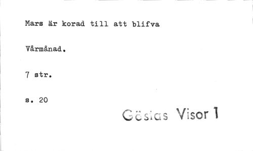 //// Mars är korad till att blifva Vårmånad, //// 7 str„ //// s. 20 //// CCs;es V sor 1 ////