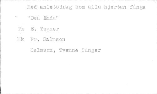 //// Med anletsdrag som alla hjertan fånga "Den Enda" //// TX E. Tegner //// Vik Fr. Salmson //// Salmson, Tvenne Sånger ////