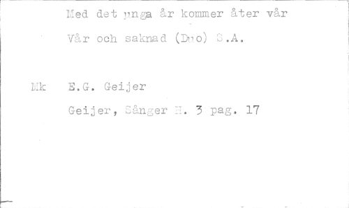 //// Med det rn2R år kommer åter vår Vår och saknad (Duo) S.A. //// Lk E.G. Geijer //// Geijer, Sånger 3 pag. 17 ////