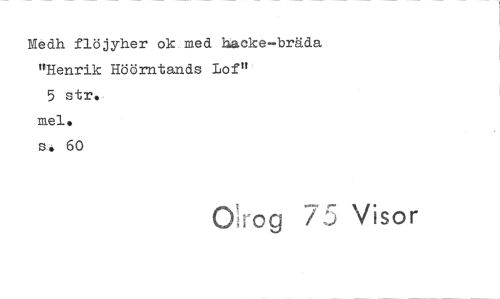 //// Medh flöjyher ok med hacke—bräda "Henrik Höörntands Lof" //// 5 str. //// mei. //// s. 60 //// Visor ////
