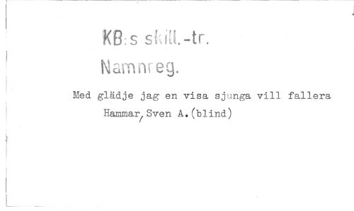 //// KR: s //// N am iv eg. //// Med glädje jag en visa sjunga vill fallera HammartSven A.(blind) ////