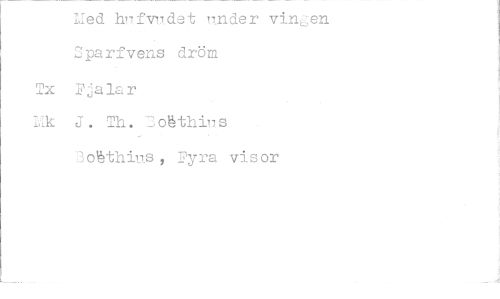 //// Wed hnfvndet under vingen Sparfvens dröm //// Tx Fjalar //// Mk J. Th. 3ohthius //// I3o%thius, Fyra visor ////