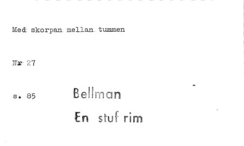 //// Med skorpan mellan tummen //// lifår 27 //// s. 85 n //// fn stuf rim ////