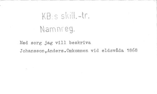 //// KE3: s skiU.-tr. //// hiamweg. //// Med sorg jag vill beskriva Johansson,Anders.0mkommen vid eldsvåda 1868 ////