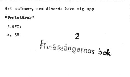 //// Med stämmor, som dånande häva sig upp "Proletärer" //// 4 str, //// se 38 //// k fe" ////