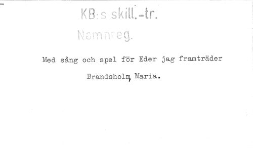 //// KB.e, //// fl //// ; 7.- • L //// Med sång och spel för Eder jag framträder Brandshol3 Maria. ////