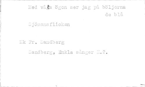 //// Med våta ögon ser jag på böljorna //// de blå //// Sjömansflickan //// rk Fr. Sandberg //// Sandberg, Enkla sång K.2. ////