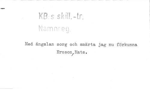 //// s sk ill.-tr. //// NaMnFp0 //// Med ängslan sorg och smärta jag nu förkunna Ersson Mats. ////