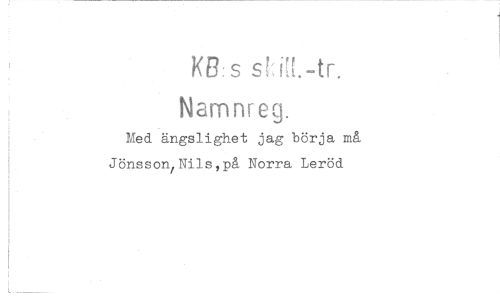 //// s //// Namnreg. //// Med ängslighet jag börja må JönssonlNils,på Norra Leröd ////