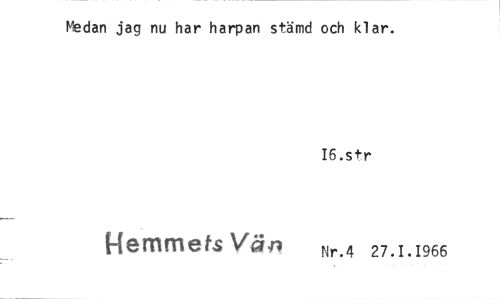 //// Medan jag nu har harpan stämd och klar. //// 16.str //// Hemmets Vän Nr.4 27.1.1966 ////