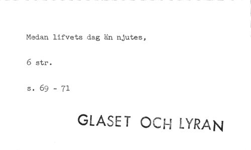 //// Medan lifvets dag än njutes, 6 str. //// s. 69 - 71 //// GLASET OCH LYRAN ////